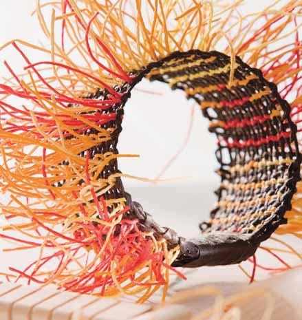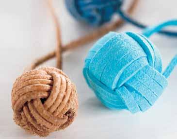 einander. Wickle Nähgarn um die Enden und verknote es gut. Mit Papierschnur legst du eine Schlaufe über die Verbindungsstelle. Du umwickelst die Schlaufe mehrfach und ziehst das Schnurende durch die Schlaufe (siehe Zeichnung). Dann ziehst du an beiden Schnurenden, sodass die Schlaufe unter den Umwicklungen verschwindet. Schneide die Enden knapp ab.
