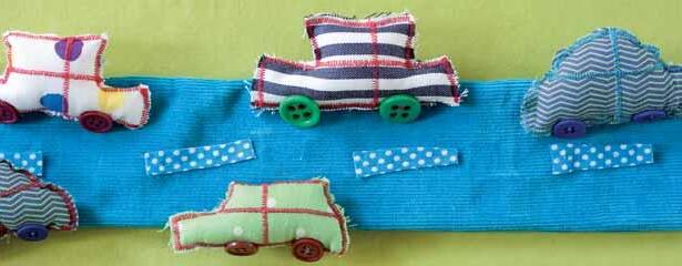 APPLIKATION: Sie ist erst auf Bügelvlies (siehe Seite 61) gebügelt worden, damit die Ränder nicht ausfransen. Anschließend kannst du die Applikation auf einen anderen Stoff mit engem Zickzackstich an den Außenkanten aufnähen.