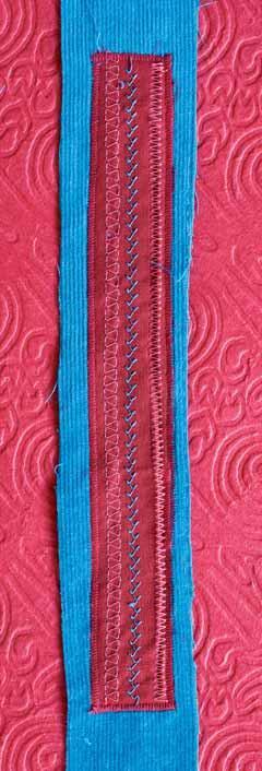 Außerdem brauchst du noch ein bisschen Spiel, damit du die Streifen um die Streben des Hockergestells legen kannst.