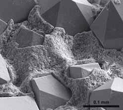 Abb. 11: Links: Die hydrothermale Brekzie bei Halt (7). Rechts: Mikrokristalliner Quarz überwächst Quarzkristalle in Hohlräumen der Brekzie (Breite des Balkens 0,1 mm, Abbildung B. Hofmann).