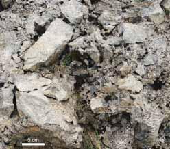 Die Wände der Hohlräume sind durch Mineralausfällungen bedeckt – meist mikrokristalliner Quarz/Chalcedon nebst anderen Mineralien (Abb. 11). Sie bildeten sich durch Ausfällung aus den Hydrothermalwässern durch die gleichen Prozesse, wie sie z. B. für die spektakulären Kluftmineralien vom Zinggenstock, verantwortlich waren (siehe Tour 23), nur später und bei tieferen Temperaturen.