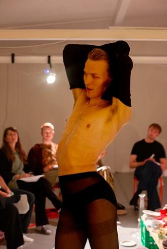 performing art that is being investigated, for example, through teaching and knowledge production in the form of writing, sound, images, video and conversations, but also through works – all of which seeks to open a dialogue with societal institutions and the public.