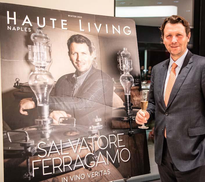 Salvatore Ferragamo’s IL Borro Wines 30th year anniversary in partnership with Ferrari of Naples at the dealership with an intimate and curated Tuscan dining and tasting experience from Chef Vincenzo Betulia. Guests were invited to Ferrari of Naples, a state-of-the-art two-year-old dealership designed to complement the Italian brand to its fullest level of lifestyle and luxury. Upon arrival, guests were greeted with a Belle di Borro Classic Method Rosé Brut 2015 while they were able to explore the beautiful Ferraris on-site and lite bites before dinner. Once guests arrived and settled in, Dagney Wysong, Marketing Director at Ferrari of Naples, and Kamal Hotchandani, CEO of Haute Living, gathered everyone to share words thanking the Haute Living Naples cover star, CEO of IL Borro, Salvatore Ferragamo, for his incredible cover story launch! Afterward, guests took their seats to a curated Tuscan meal with a menu highlighting IL Borro’s fine wines. As the group settled into the exquisite dealership, Salvatore made his way to the front of the room, where he spoke to all the guests, thanking them for their support in his cover launch.