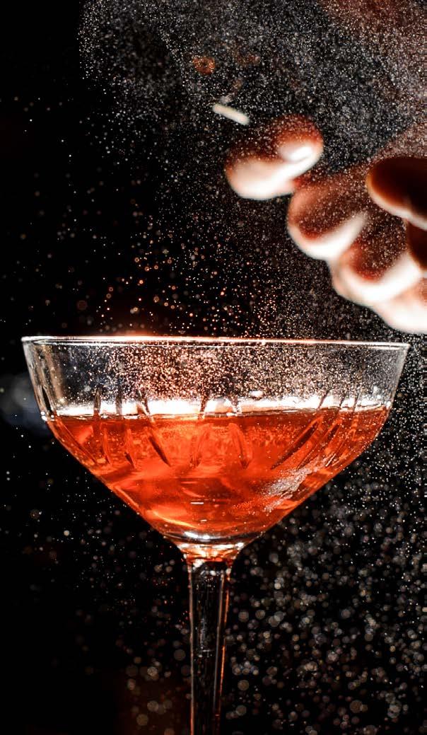 This hole-in-the-wall speakeasy bar, with its ambiance true to its name, has a lot of innovative and imaginative drinks to o er. My Hands Are Tied is one of the unique cocktails that they o er. The smoky taste from mezcal, with a hint of fresh passion fruit, very nutty almond-rose syrup, and tanginess from spiced ginger-lime, is a mind-blowing combination.