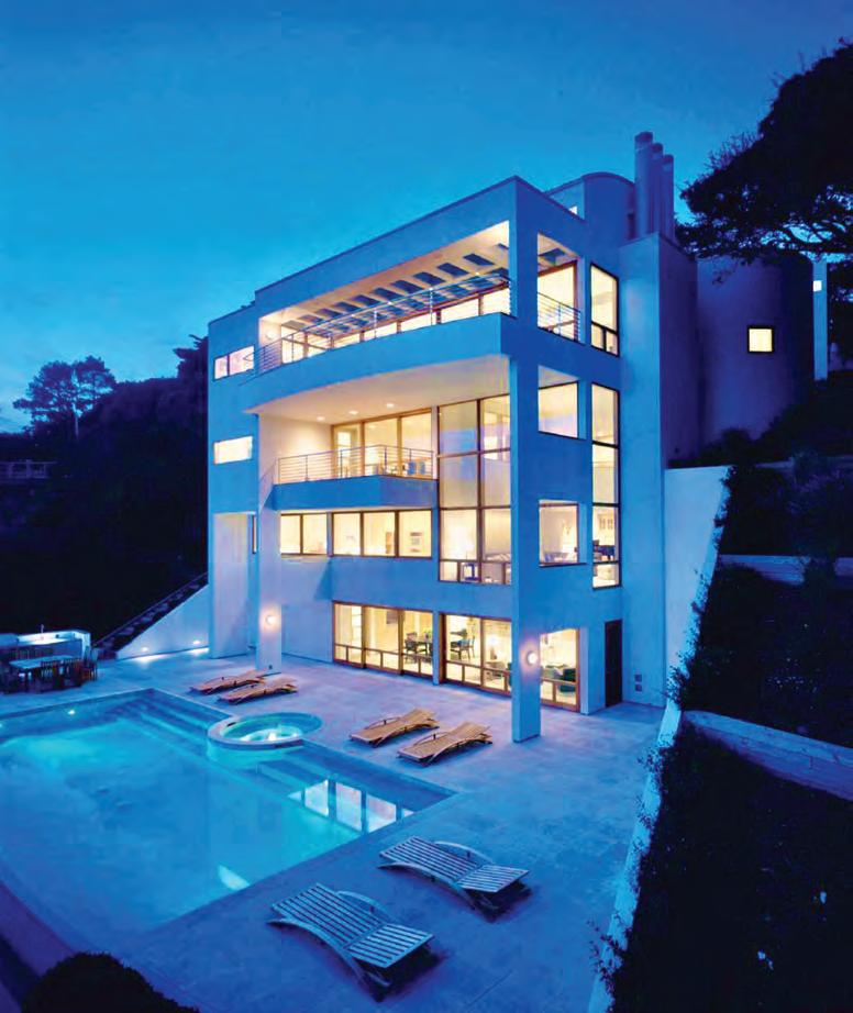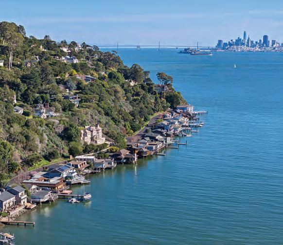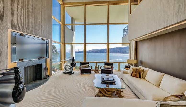 including a large study off the luxurious primary bedroom, a two-story entertainment room with floor-to-ceiling tall windows, and the lowest floor features a media room, a beautiful wet bar, a full bath with steam shower and a sauna, opens onto a spacious outdoor terrace through a wall-to-wall sliding doors where you will find an infinity edged pool and an outdoor entertainment kitchen on the San Francisco Bay. The interior floors are limestone and wide plank Bubinga wood, and cabinets are lightly stained maple. The exterior is clad in gray stained cedar and curved, standing seam, zinc roof. All exterior windows, doors, and decks are teak; all terraces are paved in beige or grayflamed limestone. The home is a state-of-the-art “Smart House” and within walking distance of the San Francisco Yacht Club, Corinthian Yacht Club, and downtown Tiburon where you will find Ferry services to San Francisco and Angel Island and dozens of fine restaurants, including Michael Mina’s Bungalow Kitchen, Malibu Farm, Sam’s Café, Servino’s, Caprice and Bistro Le Petitte Left Bank. See more at 445BelvedereAve.com