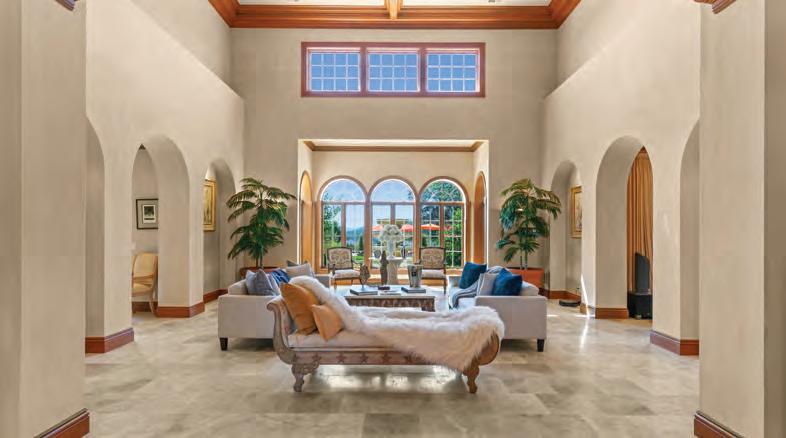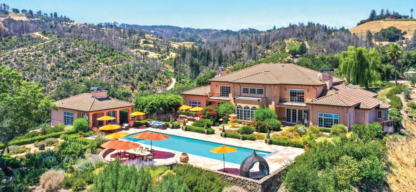 This gated Tuscan estate offers 10,000 sq. ft. of luxury on over 42 acres with panoramic views of Napa Valley. The main residence and guest house feature high-end finishes, soaring ceilings, 7 bedrooms, 6.5 bathrooms, a wine cellar, and a grand motor court. The estate includes an 80 ft pool, outdoor kitchen, pizza oven, and lush gardens with award-winning vineyards.