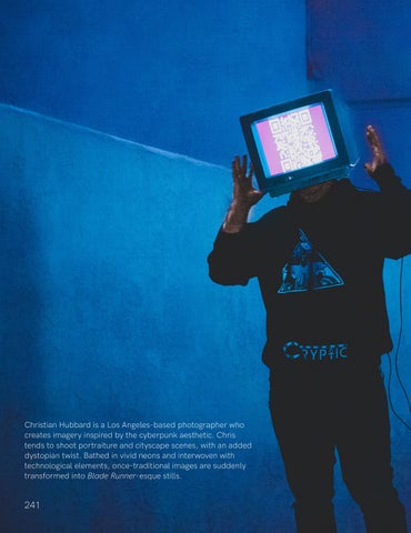Christian Hubbard is a Los Angeles-based photographer who creates imagery inspired by the cyberpunk aesthetic. Chris tends to shoot portraiture and cityscape scenes, with an added dystopian twist. Bathed in vivid neons and interwoven with technological elements, once-traditional images are suddenly transformed into Blade Runner-esque stills.