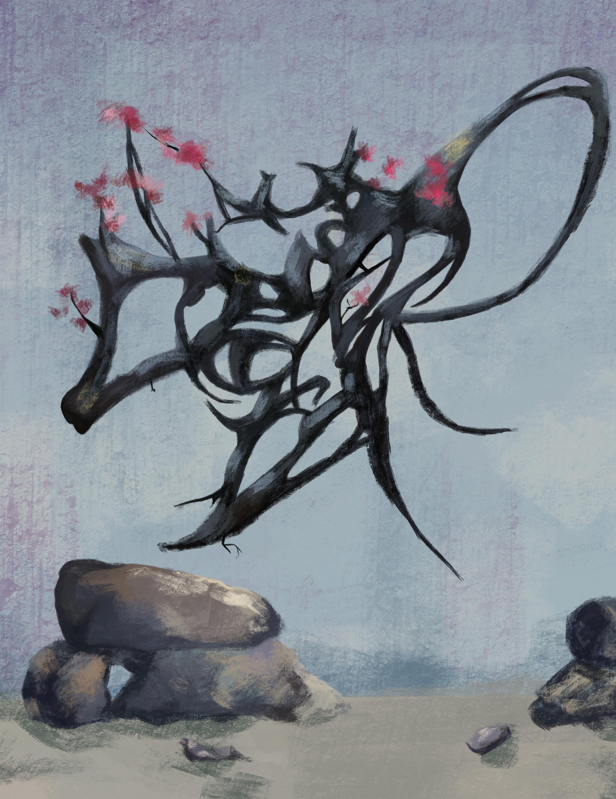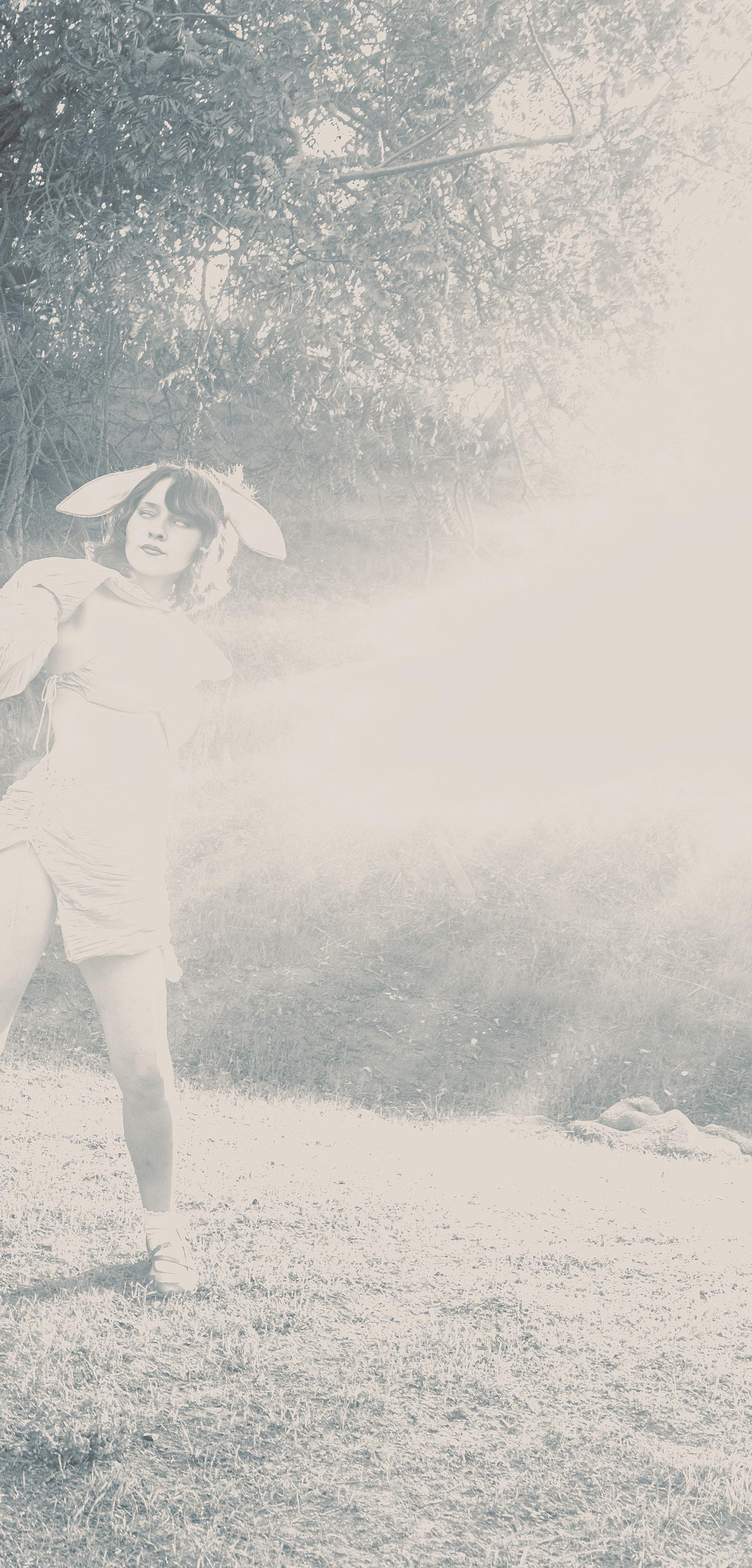 — something calling out to her. The earth has spoken and for a moment she only knows how to be fearful. But greater than her fear is her hunger, a hunger for sage counsel, warmth, what she can only describe as an eternal girlhood. The presence with her swells at that last thought, gentle but firm, and suddenly she can’t help but think of water slipping through cupped hands, and rivulets of sunlight running through rafters. A whisper of surrender, and a breath of deference. A hum grows in her ears not unlike a summer song: Listen, something—or someone—says, and then turn —