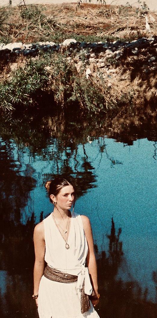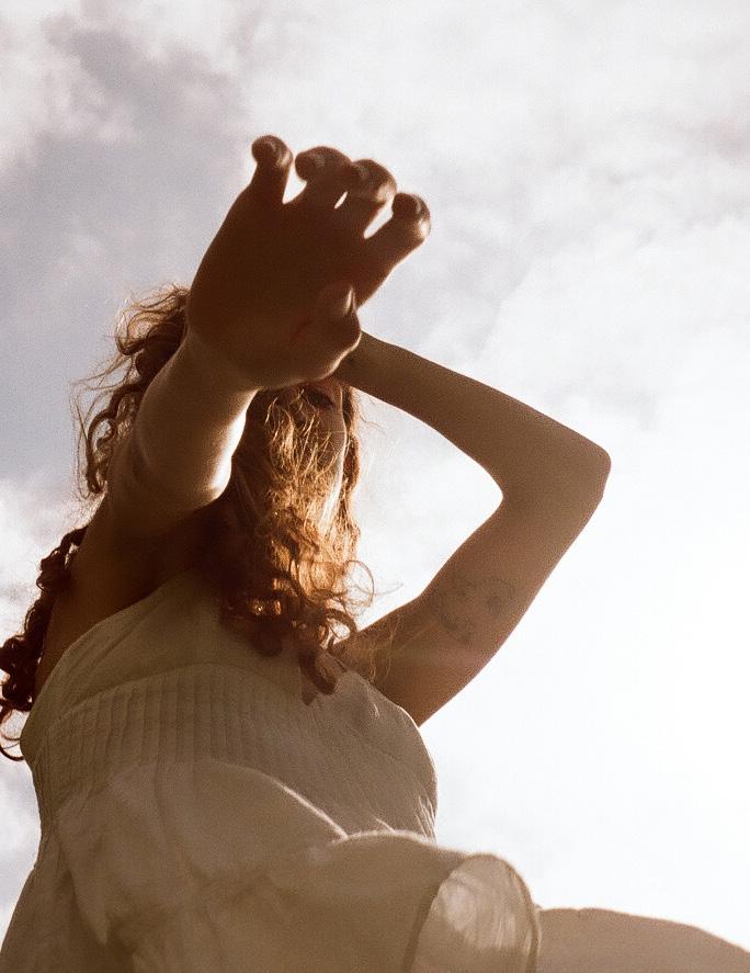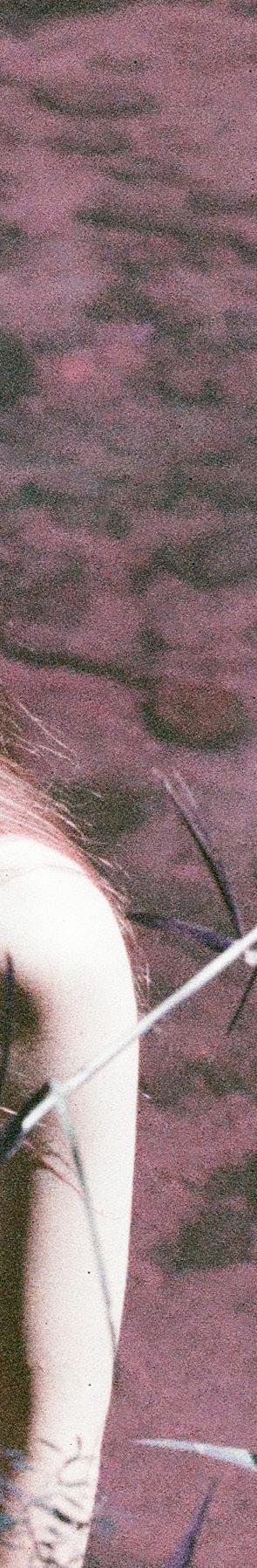 Ainsley Phillips is a Texas native and Brooklynbased photographer. She works primarily in 35mm film, specializing in layered multiple exposures that transform the everyday into something dreamlike and luminous. Drawn repeatedly to bodies of water and rivers as sources of reflection, both literal and spiritual, her work seeks out the small moments that serve as communion, finding divinity in nature’s shining gestures. Her latest project, Manus Dei, shot on Lomography Lomochrome Purple and Color 400 film, explores how slowing down in nature can become its own form of worship, capturing shimmering goldflecked water and honey-lit landscapes as acts of devotion. Phillips treats photography as painting with light, layering exposures to create depth and drama in each frame. Special thanks to artist and collaborator Twyla Roberts for modeling and trusting the vision throughout this series.