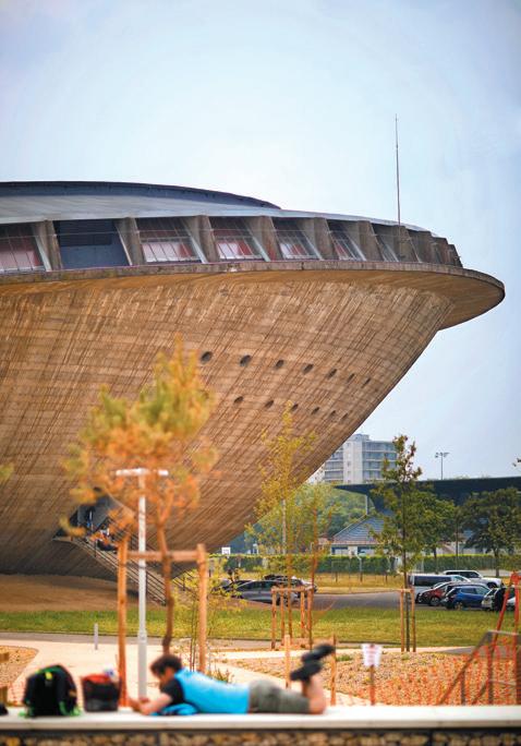 Véritable repère, elle domine la plaine des sports réhaussée du ruban bleu de sa piste d'athlétisme. La Soucoupe, symbole de la Reconstruction des années 1950, s'est posée en face du Parc paysager, sur un ancien marais remblayé. Immense de par ses 83 mètres de diamètre, l'étonnant bâtiment abrite le Palais des sports de la ville.