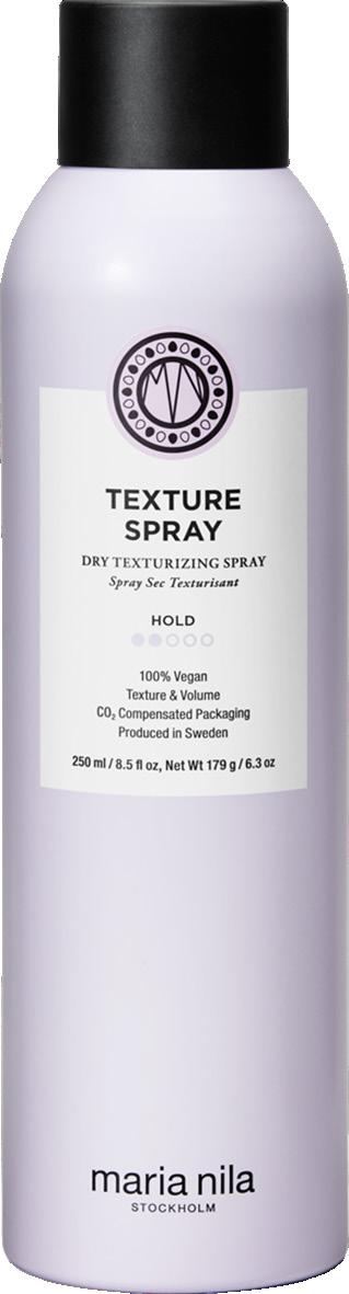 Avslutt med en mild stylingspray med lett hold som tilfører glans og reduserer frizz. Maria Nila Texture Spray 250ml 309,-