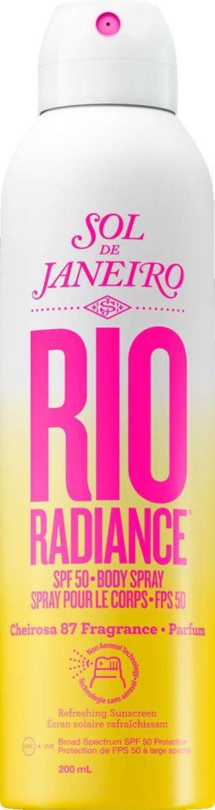 En oppkvikkende og fuktighetsgivende body spray med SPF50 som etterlater en glansfull finish. Sol de Janeiro Rio Radiance SPF 50 Body Spray. 200ml 499,-