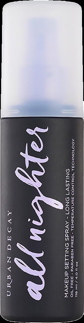 En mikrofin spray som frisker opp huden og fikserer makeupen din. Perfekt for å holde sminken på plass i sommervarmen. Urban Decay All Nighter Makeup Setting Spray. 118ml 460,-