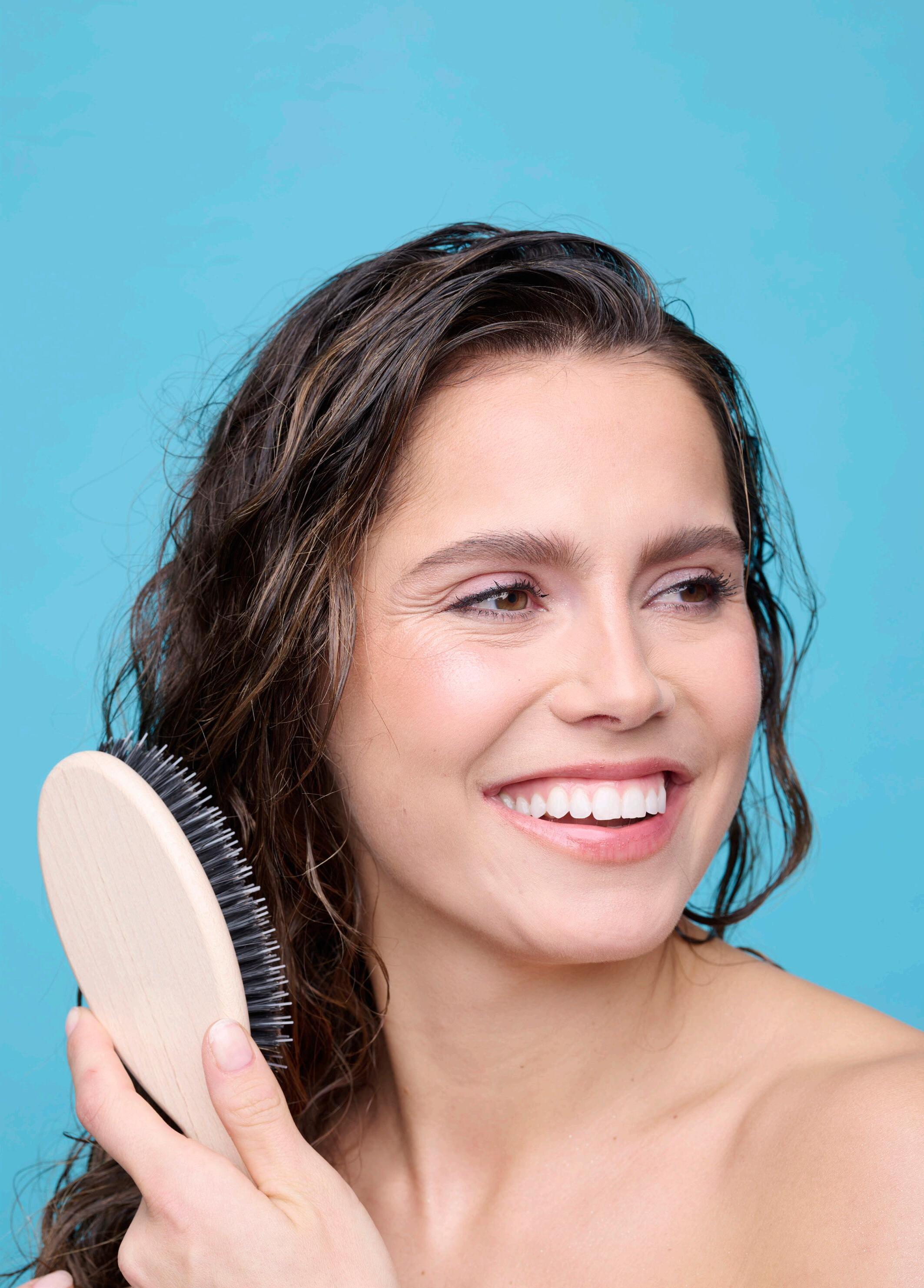 De perfekte produktene for hydrert, frizz-free hår i sommervarmen. The Home Curl for myke curls eller The Gelly Type for en sleek ponytail.