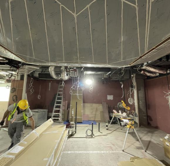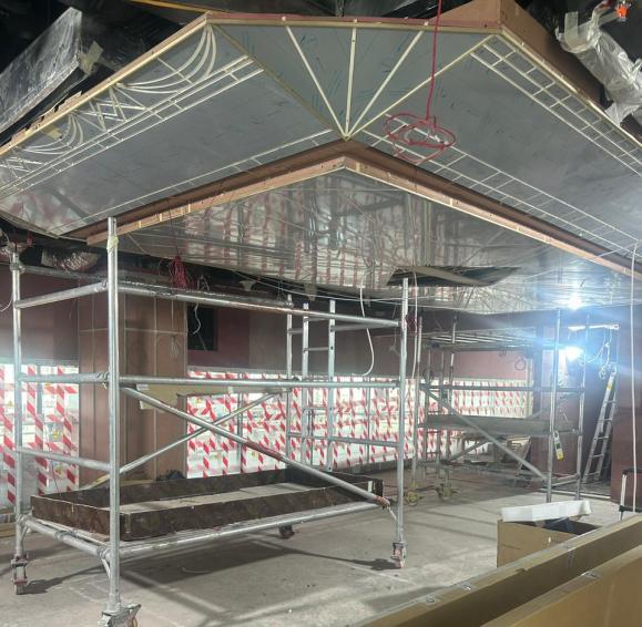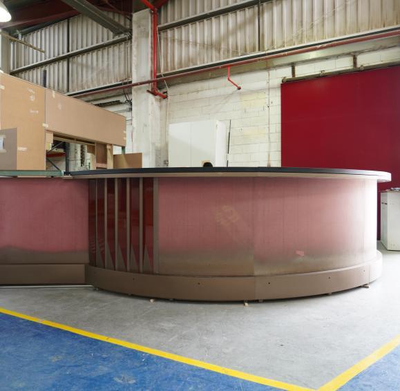 Manufacturing and installing custom reception counters, ornate bar counters, a striking reception desk with basket -style metalwork, and a decorative raft ceiling in the lounge.