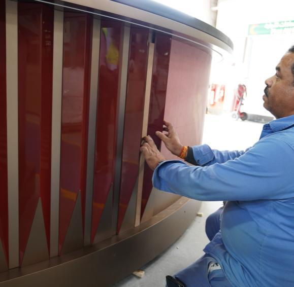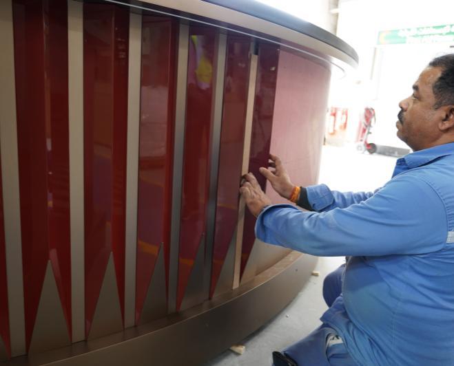 The stunning reception counter and bar were manufactured at our Bahrain factory before being shipped and installed on -site.