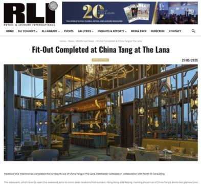 China Tang marked its luxurious 8,000 sq. ft. Middle Eastern debut at The Lana, Dorchester Collection, Dubai, in May 2025. This turnkey fit -out was completed in just 10 months, signifying a major expansion for Lai Sun Dining in partnership with North 51 Consulting.