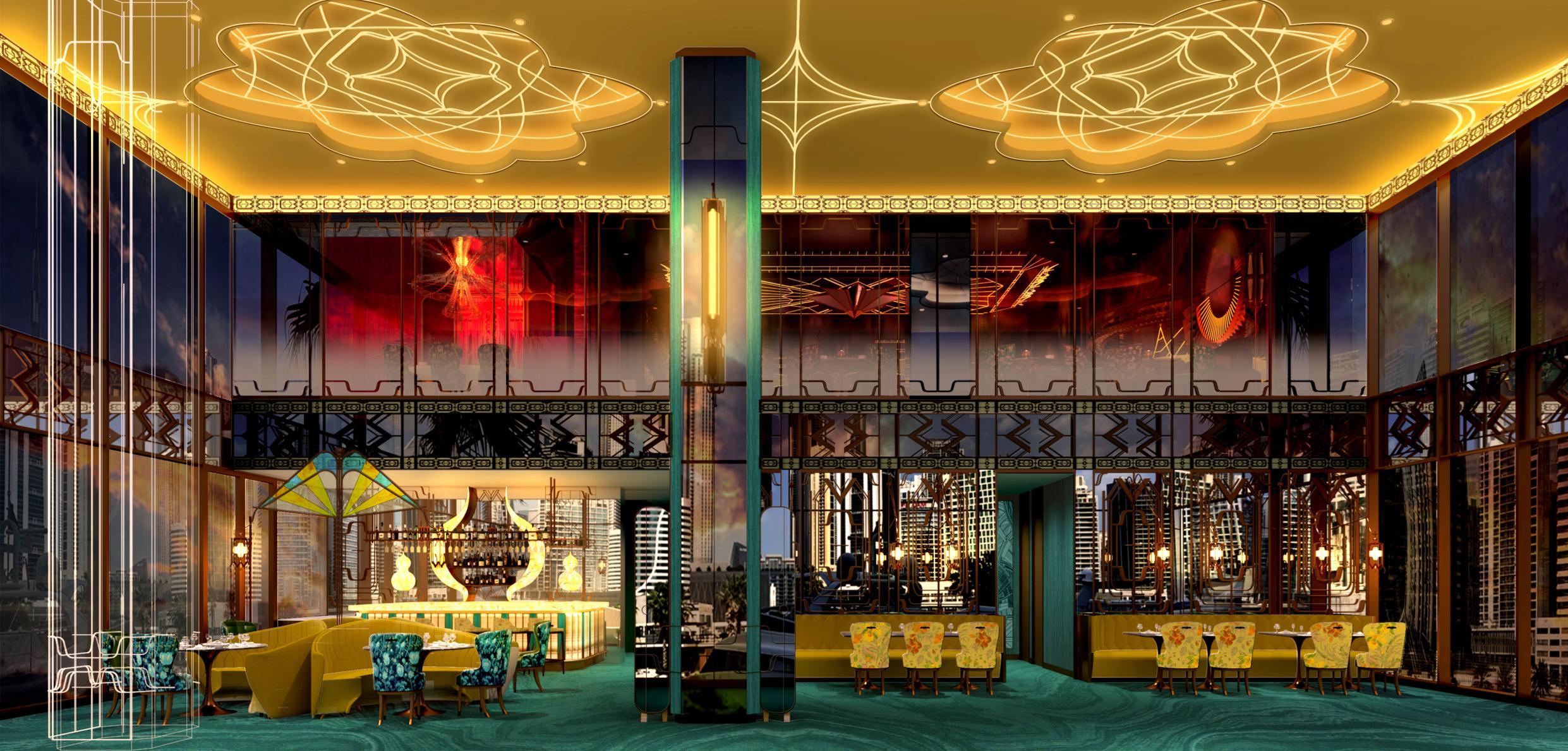 Crafting a sophisticated main dining area, an exclusive upstairs lounge, and an inviting outdoor terrace.