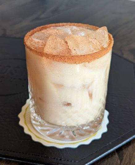 Build in shaker, shake and pour over fresh ice into double rocks glass rimmed in cinnamon sugar, dust with nutmeg.