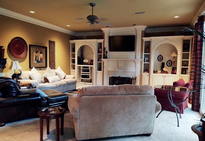 Much of your relaxation time will be spent in the comfortable family room, complete with gas fireplace, built-in cabinetry, wet bar with ice maker, and three sets of French doors. This room opens to the spacious kitchen with center island, stunning wood cabinetry, built-in refrigerator/freezer, and desk area. Beyond the counter-height peninsula island, there is the breakfast room with gas fireplace designed for more casual meals. Both the kitchen and breakfast rooms enjoy lovely views of the backyard.