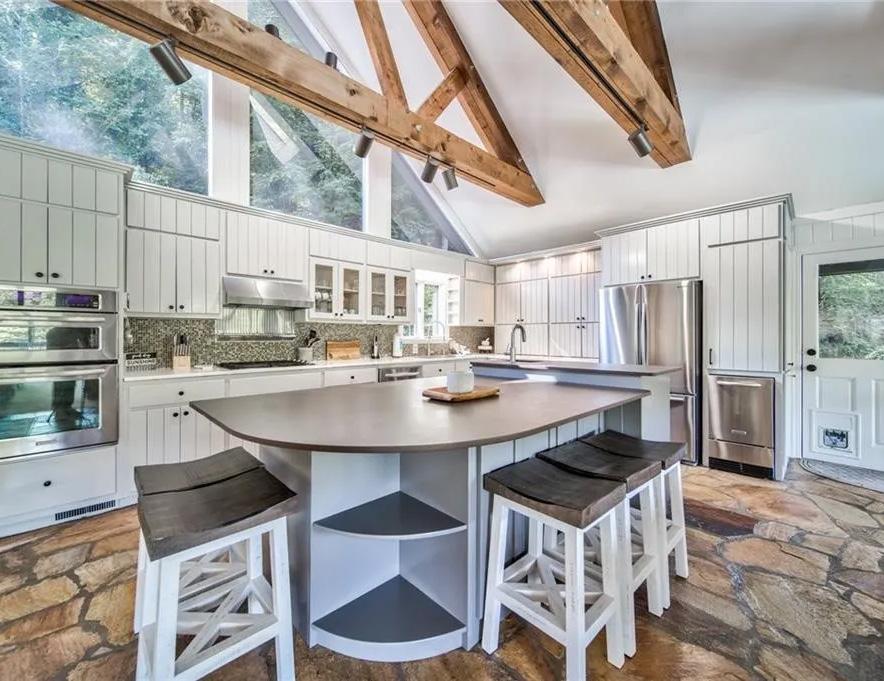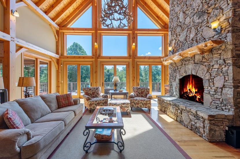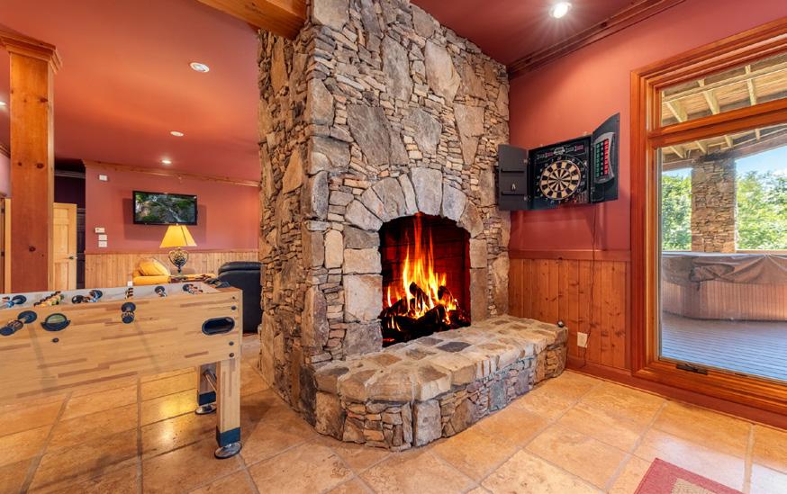 This Storybook One-of-a-Kind mountain custom timber frame luxury lodge in Young Harris, Georgia is a truly remarkable property. Nestled alongside picturesque Brasstown Creek and surrounded by oak trees, this home offers a serene and picturesque setting. The sound of the flowing water from the creek creates a soothing atmosphere, perfect for relaxation. The lodge features a vineyard and orchard, allowing you to enjoy the fruits of your labor. Spend a day fly fishing in the creek and then unwind in the hot tub or sauna. The outdoor space is extensive, with over 2,000 square feet of deck that overlooks the creek, pasture, and stunning mountain views. With 630 feet of creek frontage, Creekside Lodge offers a tranquil waterfront experience. The living space of the lodge spans an impressive 6,407 square feet, with five bedrooms and five and a half bathrooms.