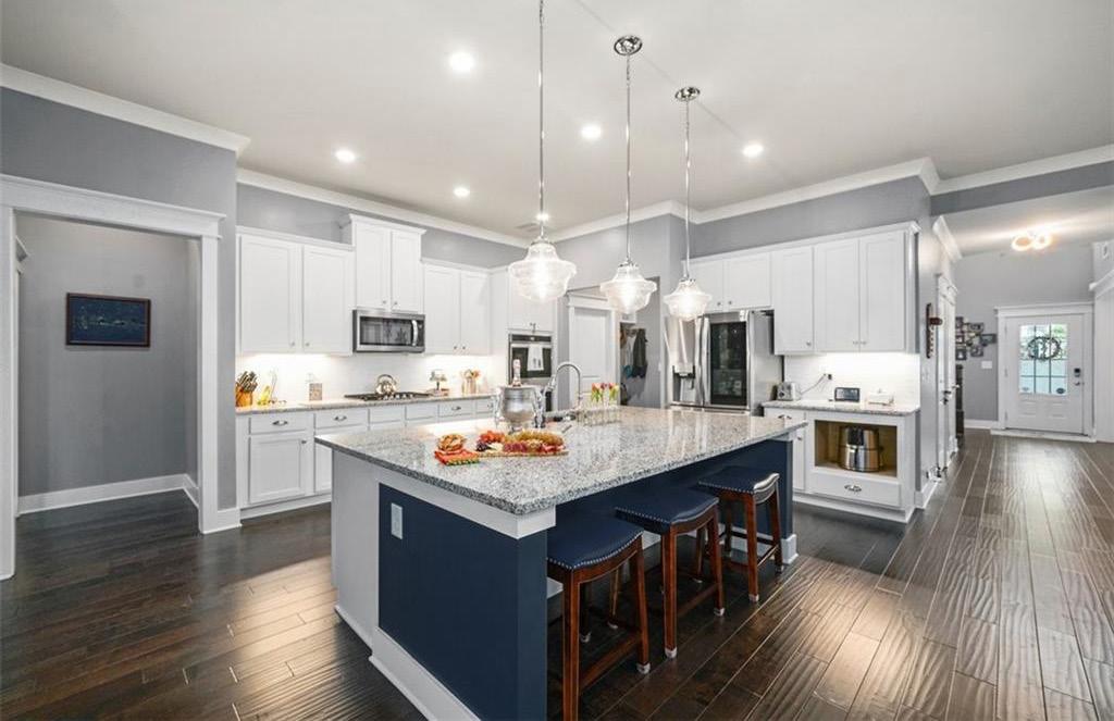 Soak up the savoir vivre of the modern south at Avalon in this urban townhome that proves sophistication can be homey! Delightfully convenient to Avalon Boulevard, with a gated front porch that looks out at tree-lined streets and green common spaces, this three-bedroom, three-and-one-halfbathroom two-story offers the perfect opportunity to enjoy a low-maintenance lifestyle in one of Atlanta’s premier developments. A double front door creates an accessible entry and invites into an open-concept main level, where living, entertaining, and cooking spaces combine in an effortless flow. Take the stairs to the second level, where hardwood floors flow throughout the hallway and primary suite. Discover a light and tranquil space for repose in the oversized primary suite with a walk-in closet where simplicity and elegance set the stage for relaxation. Embrace the luxury of space at 876 3rd Street. A two-car garage, outfitted with tall ceilings and gorilla shelves, provides plenty of room for vehicles. Located in a sought-after live-work-play community, this exceptional urban gem allows for seamless ease and lifestyle balance.