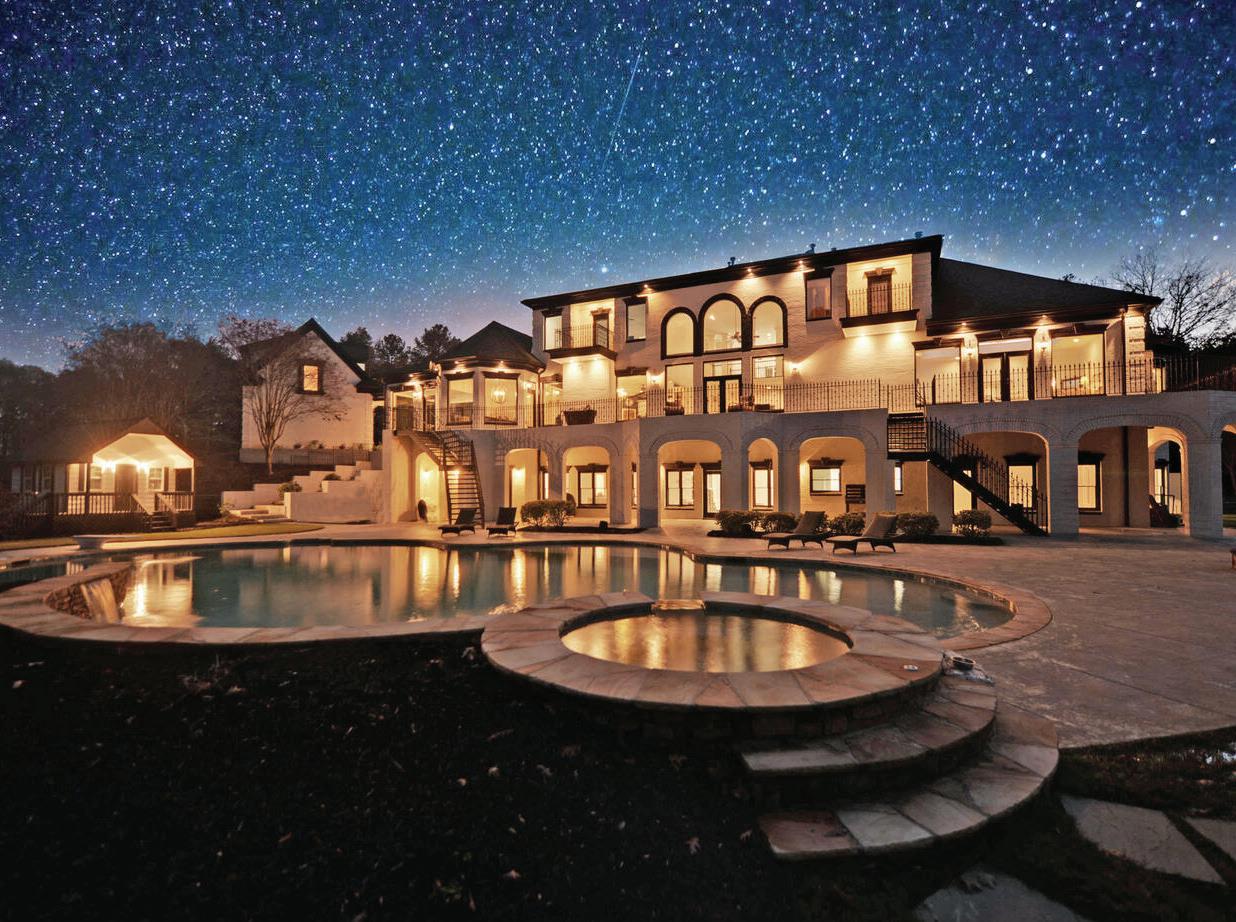 Offered at $6,500,000. This magnificent gated luxury estate is nestled on a double lot spanning 2.4 acres in the highly coveted estate neighborhood in 30327 in Buckhead. As you step inside, the light-filled two-story foyer welcomes you with Calacutta marble floors, leading to the great room with fireplace that opens to the family room and outdoor entertaining terraces with fireplace and built in outdoor kitchen. It also has an elevator, Control4 smart home and whole house generator. The dining room with butler’s bar connect to the newly new chef’s kitchen equipped with stateof-the-art Wolf SubZero appliances, custom cabinetry and lighting to provide the perfect backdrop for lavish dinner parties and entertaining guests. Enjoy an open and transitional floor plan that opens to the outdoor patios.