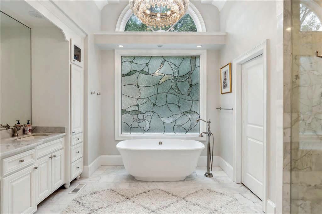 Set on a manicured lot on a sought-after cul-de-sac in Sandy Springs, this five-bedroom, four-bathroom home with two half bathrooms and four garage spaces was recently updated and built for enjoying the outdoors with guests. Evoking images of poolside leisure, al fresco dining, s’mores at the fire pit or dinner parties that spill out onto the deck, the picturesque exterior features stacked stone and stucco with a gabled roof and windows. Proceed through the front door to the soaring two-story entrance foyer with limestone floors and a formal staircase to the right that leads to the upper level. To the left, enter the banquet-sized dining room with a chandelier and wainscoting that comfortably seats 12. French doors lead to the completely remodeled chef’s kitchen offering new floors/lights/electrical/plumbing, updated wood shelves and cabinets, new quartz countertops and new professional-grade appliances (including a Sub-Zero 48” refrigerator, a 60” six-burner Wolf double range with a double griddle and custom 60” vent hood, a new Cove dishwasher and a new microwave). Surrounded on three sides by peaceful backyard views, the breakfast area features French doors that open to multiple outdoor-deck entertaining spaces. Proceed to the family room with remote Silhouette blinds, a stacked stone fireplace, vaulted ceilings and exposed beams that also offers a rear staircase and a side-door entry to the deck. The cozy fireside living room features built-ins and a coffered ceiling. Hardwood floors flow throughout the main level, which has been updated with a new AC. The main-level primary suite includes a generous spa-inspired bathroom featuring beautiful ceiling detail, a gigantic soaking tub, Carrara marble vanities and floors and a heated marble shower. Upper-level bedroom suites provide generous walk-in closets. The home offers a generous 7,071+/- sq ft of space on three levels, plantation shutters throughout and a fully finished terrace level that includes a quartz kitchen, tile and wood floors, a fireplace, a full bathroom, a game area, a fireplace and a media area. Outside, updates include new electrical/plumbing, a new filter unit, a new simmer, new LED pool and spa lights and new Jandy automation. The tile work around the pool has also been upgraded and no-maintenance turf has been added to the backyard. Located in the North Springs High School district, this home is convenient to the Chattahoochee River National Recreation Area.