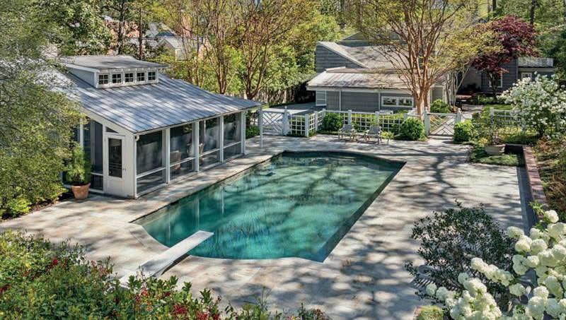 This stunning property features 5 spacious bedrooms and 5.5 baths across the main house and guest house, set on nearly an acre (.87) and located away from the street. Built in 1947 and renovated by Henri Jova and Kemp Mooney, it includes a bright kitchen with a breakfast area, a vaulted family room with a fireplace, and a dining room that seats 18, ideal for art collectors. The primary bedroom offers an ensuite bath, nearby laundry, and a cozy reading room. The two-story guest house has 2 bedrooms, 2 baths, and a large screened porch overlooking the pool and charming courtyard. A converted greenhouse serves as a gym, while the beautifully landscaped yard is fully fenced. Additional features include a 2-car garage and extra parking. In spring, the front yard blooms with daffodils, and membership in the neighborhood association is optional. This property is larger than it appears and truly exceptional.