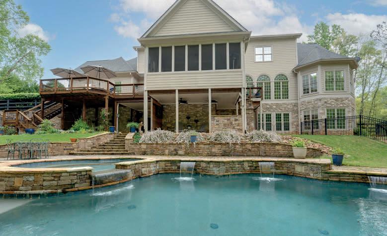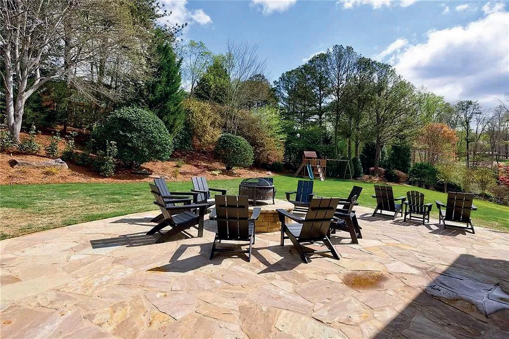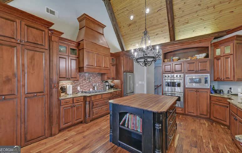 Designed by architect Stephen Fuller, this 10,000+/- sq ft home boasts a cedar shake roof (metal over the garage) approximately four and a half years old, complemented by exterior Hardiplank and stone accents. Completely renovated over the past three years, its main-level primary suite, fully equipped in-law suite, four-car garage, and carriage house above offer ample room for comfortable multi-generational living and entertaining. As part of the renovation, the owners have replaced the HVAC and the hot water tanks (there are two) and repainted inside and out. Commencing with a grand two-story entry, the interior immediately impresses with a stylishly updated aesthetic. Sunlight cascades onto 7.5-inchwide engineered white oak hardwood floors throughout, while new lighting provides increased energy efficiency and function. Boasting a spacious formal dining room, a large office with a vanishing closet, and a fireside great room with a stately coffered ceiling, built-ins, and direct patio and backyard views, the main level is well-suited for hosting. The heart of the layout is the fully remodeled kitchen, with all new cabinets, countertops, and top-of-the-line appliances. Flanked by a breakfast nook and a keeping room complete with a fireplace and a beamed, vaulted ceiling, it offers direct access to an outdoor grill area. A stunning retreat, the mainlevel primary suite features a tray ceiling, a sitting area, and a luxe en suite with a soaking tub, a walk-in shower, and extended vanity space. Upstairs, discover four additional bedrooms, three full bathrooms with bathtubs and showers, along with an art/sewing room and a wall of bookshelves. A versatile upper-level space is ideal for various lifestyle needs and adds a thoughtful touch to this inviting retreat. The finished terrace level includes an in-law suite with a full kitchen, a living room, a bedroom, a full bathroom, a large home gym, a den/entertaining area, and plenty of storage space. Offering a perfect balance of elegance and functionality, the fully fenced yard with a gate ensures pet and resident safety, while the extensive landscaping adds to the property’s charm. Located a stone’s throw from Crabapple within the sought-after Northwestern Middle and Milton High School districts, it is convenient to historic Roswell, Alpharetta, Avalon, and GA-400. Every detail has been meticulously curated for the discerning homeowner at 775 Owens Lake Road. Welcome home to luxury living at its finest.