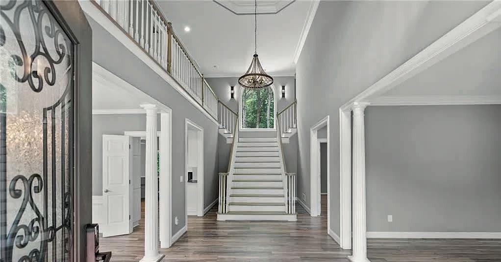 Move-in ready and priced to sell! Well appointed 6-bedroom, 5 1/2-bathroom estate in the desired Chartwell community. Upscale Johns Creek location offers a luxury lifestyle with easy access to shopping, fine dining, top-rated schools, and parks aplenty. Recently renovated inside and out with all-new neutral paint throughout, new/upgraded flooring, new lighting fixtures throughout, and new decking. Kitchens and bathrooms also recently remodeled as well as refreshed landscaping. Move-in ready! The grand staircase entrance foyer boasts the elegance that's shown throughout the home upon entering. Tons of windows throughout the home provide plenty of natural lighting, and wooded backyard also provides privacy from neighbors. Shopping centers almost directly outside neighborhood entrance make activities and errands stress-free. The Community of Chartwell offers top-notch amenities for most lifestyles. Amenities range from a community clubhouse, tennis courts, pickleball courts, a large swimming pool, a swim team, playgrounds, and more. Don't miss out on this wonderful opportunity to be in one of the best neighborhoods in Johns Creek and schedule your showing when convenient!