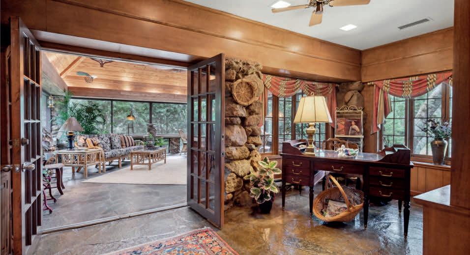 A detached three-car garage with a workshop, outdoor workspace, and attic storage complements the main house. The guest house offers a comfortable retreat for visitors or extended family. Located in a desirable area with top-rated schools and easy access to amenities, this property is a true retreat, offering privacy, luxury, and comfort.