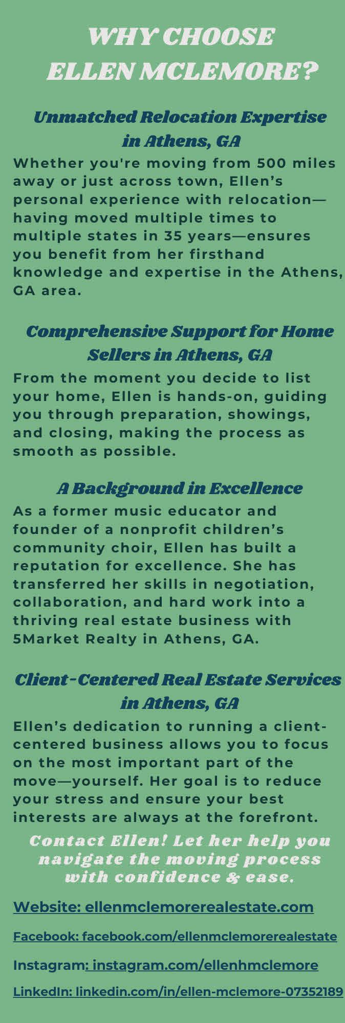 Her diverse experiences across these various locations provide her with a unique perspective and valuable insights that she leverages to assist her clients and investors who are relocating to Georgia and seeking to purchase a home.