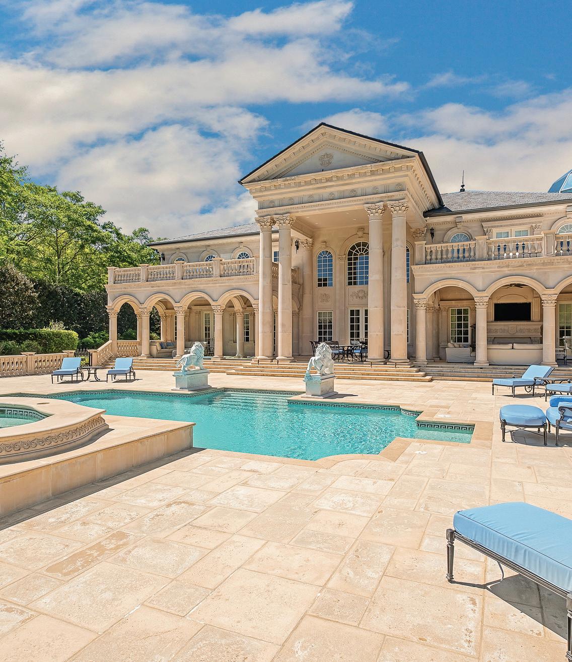 The spacious interior features expansive living areas, a gourmet kitchen with top-of-theline appliances, and a formal dining area seating over 20. Each bedroom includes its own en-suite bathroom, and the master suite offers a serene retreat with a lavish bathroom.