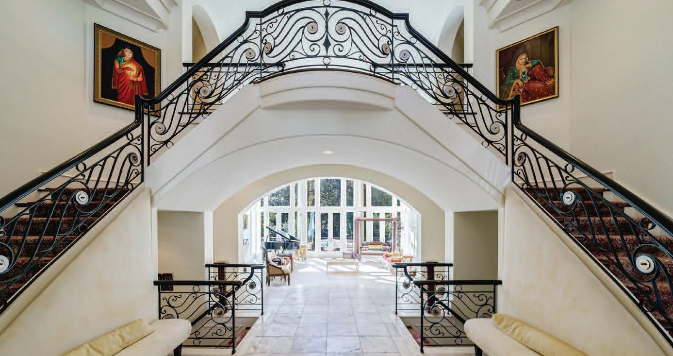 From the imported San Marco roof tiles to the exquisite woodworking and handwaxed Venetian plaster walls, no expense was spared with each carefully selected detail in this home. Constructed with all imported travertine stone, the exterior walls measure between 12”-16” of solid concrete and stone, with the interior walls primarily finished with stone or Venetian plaster. This property also features resortstyle amenities including a commercial-sized saltwater pool, 10-person spa, wet and dry saunas, sports court,1,000 bottle wine cellar, and a 7-car garage. Offered at $8,000,000. For more about this property, go to www.6420RiversideDr.com