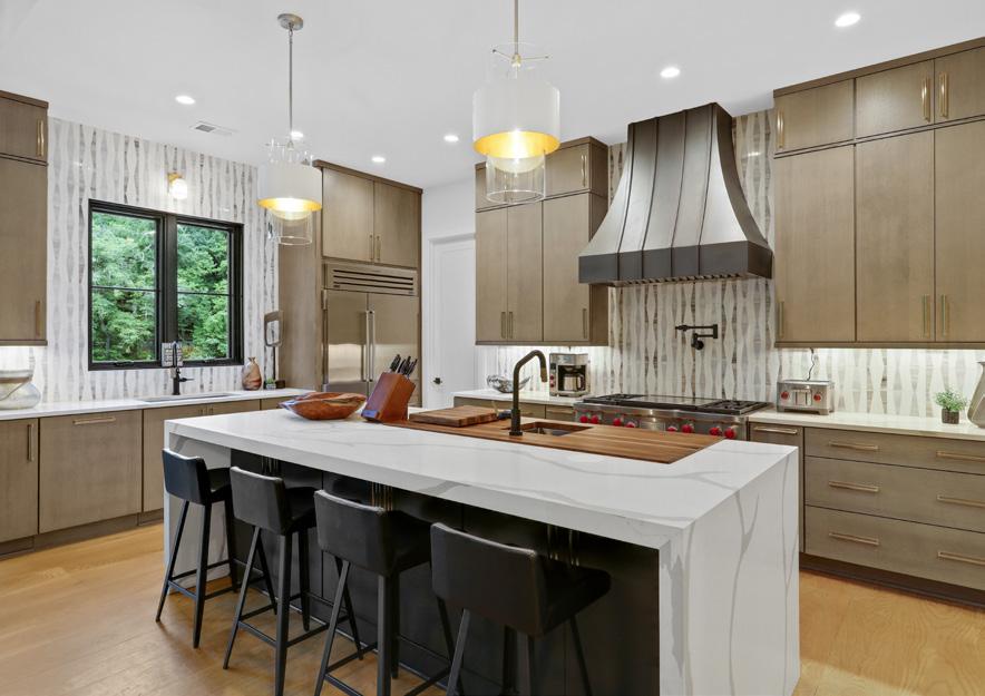 In the heart of Avondale Estates, you’ll find this enclave of Artisian cottages by renowned Thrive Homes with exceptional craftsmanship and architectural details. This striking home has been prudently loved and immaculately kept with distinct features and designer appointments curated by Sean Alexander Designs. Fresh interior paint throughout by Farrow & Ball, custom Rejuvenation brass hardware, Emtek door handles, designer lighting, and custom draperies. The large, open-concept floor plan is bright and airy featuring wide-plank pine floors, a gorgeous kitchen with Carrara marble countertops and stacked backsplash, Rohl Georgian Era faucet, Kohler apron porcelain farm sink, custom-built French doors with brass hardware, stainless appliances with vent hood and ample prep space. The transition from cooking to dining to relaxing is ideal for comfortable living yet elegant entertaining. An elevator accesses all three levels from the garage to the living and sleeping levels. Upstairs, you’ll find the Owner’s retreat with vaulted ceilings, dewey light, and a large, custom closet. Additionally, two bedrooms (one currently opened up as a loft with a jackand-jill bathroom. The entry-level features a welcoming foyer, its own bright ensuite bedroom, and a custom mudroom cabinet/drop zone with custom French cushion, brass Duck hooks, and deVol pulls. The garage provides plenty of storage and additional entry. The Grove at Avondale features a sparkling private swimming pool and pavilion, manicured green space, and walking paths and is within pedestrian distance to downtown Decatur and historic Avondale.