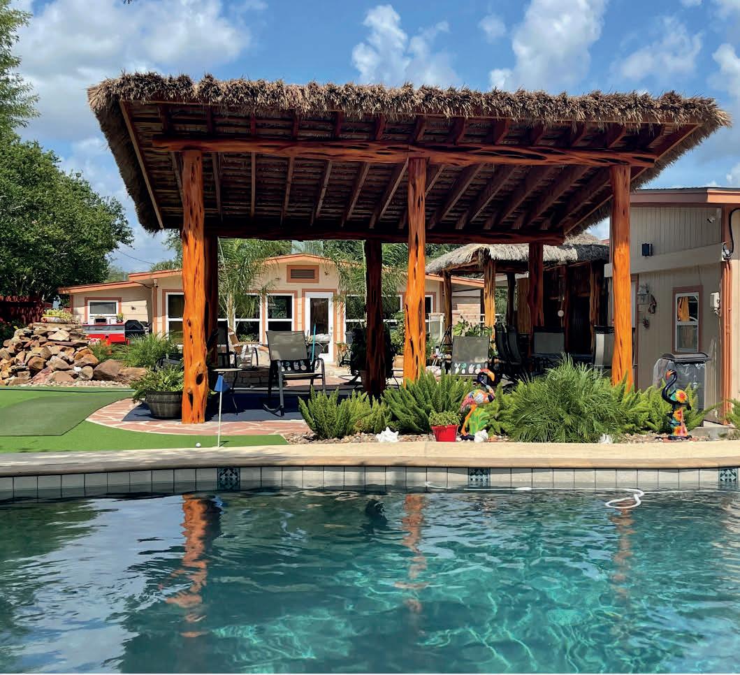 Adjacent to the yard are two separate living quarters, La Casita and The Executive Suite. La Casita is a quaint space with a kitchen, bathroom, and bedroom. Your guests will feel right at home. The Executive Suite has a coastal vibe featuring tons of storage, open kitchen, bathroom and grand primary bedroom. For entertaining, take advantage of the billiards/game room and bar. It’s the perfect space when you need a break from all of the outside fun.