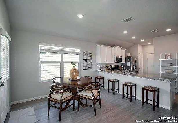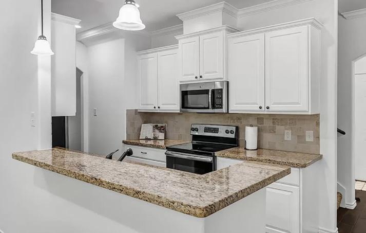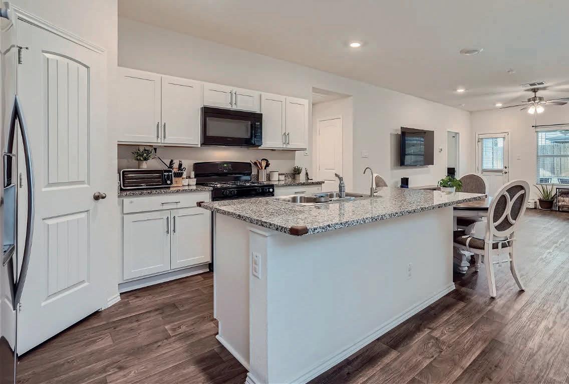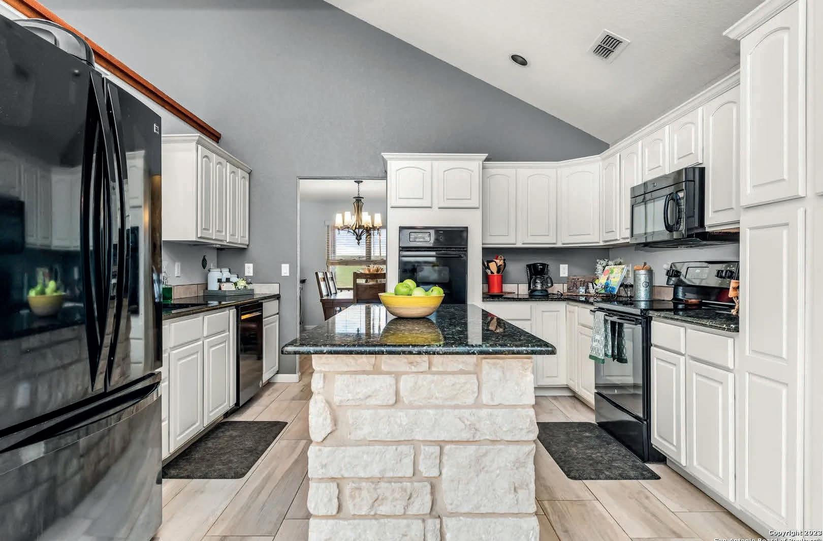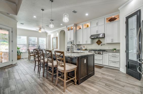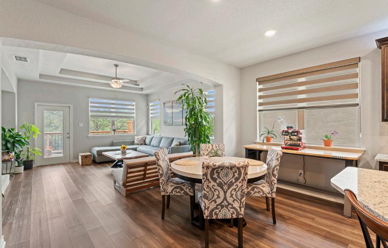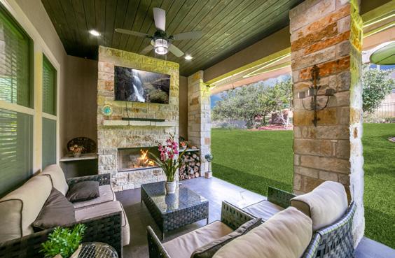 This home is a true gem, boasting a gorgeous exterior with stone accents and within a coveted neighborhood. The foyer sets the tone of elegance and luxury that can be found throughout the home. The open-concept floor plan includes the dining area, living room, and eat-in gourmet chef’s kitchen. The home features exquisite stone accents, such as the accent wall in the dining area and the floor-toceiling fireplace. Home chefs will greatly appreciate the gourmet kitchen with a grand island, beautiful & spacious countertops are perfect for all your holiday prep, high-end stainless steel appliances, and fresh white cabinetry. Your primary tranquil suite awaits you featuring a spa-like en suite bathroom with beautiful countertops, a deep soaking tub, and a large walk-thru shower with dual shower heads. Complete with two additional spacious bedrooms; this home provides ample space for you and your loved ones to enjoy. The backyard is truly an outdoor paradise unlike any other featuring a fabulous outdoor kitchen, covered patio space with a stone fireplace, and ample grassy area to enjoy. Located in North San Antonio, this home allows quick access to San Antonio hot spots, including the Stone Oak area and Canyon Springs Golf Club. Come and explore all this luxurious dream home has to offer and make it yours today! 3 BEDS | 2.5 BATHS | 2,406 SQFT. | $739,000