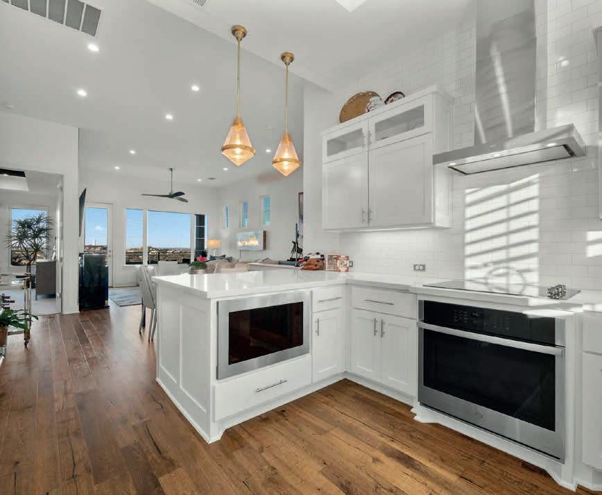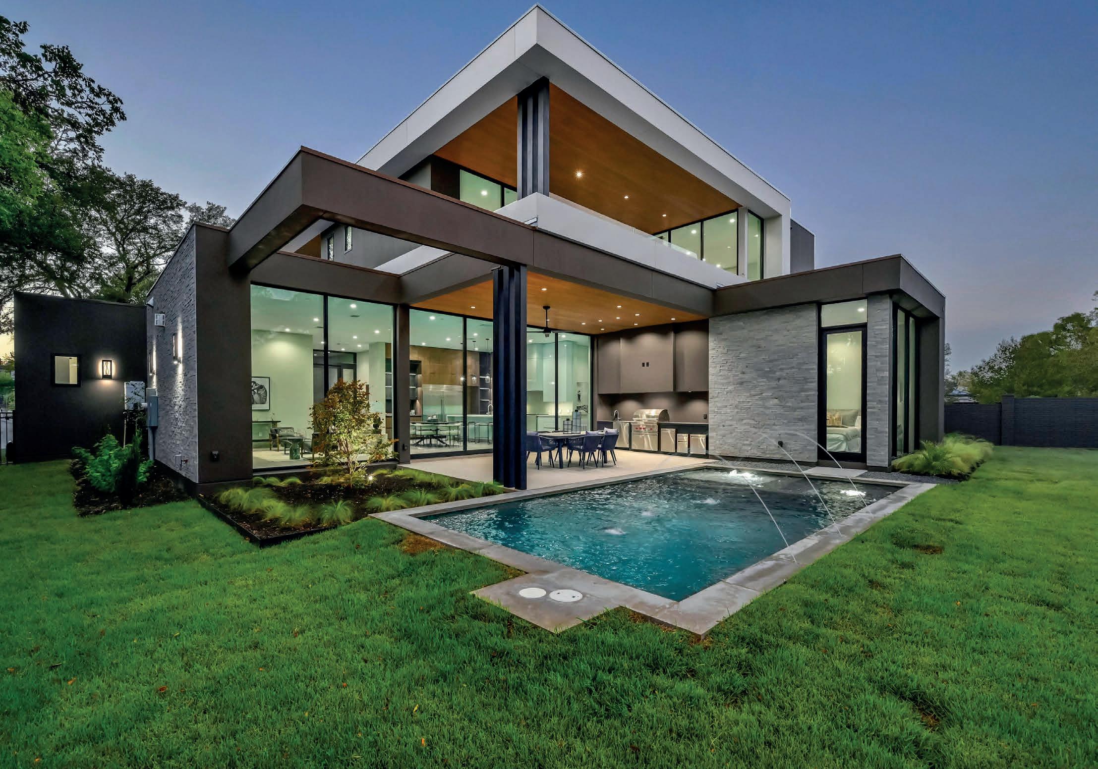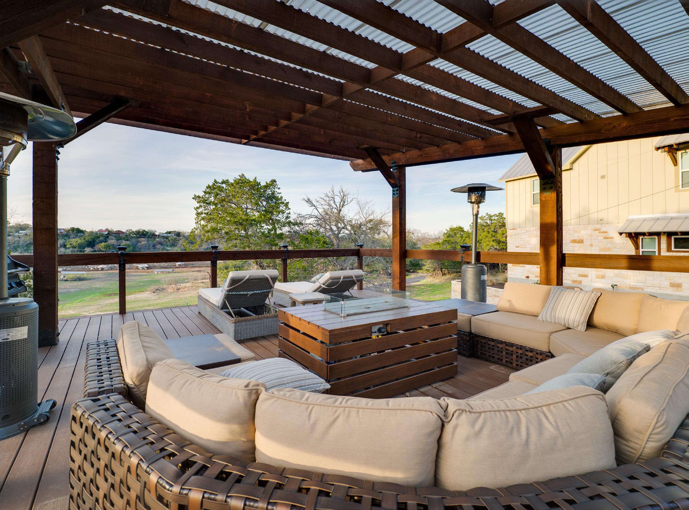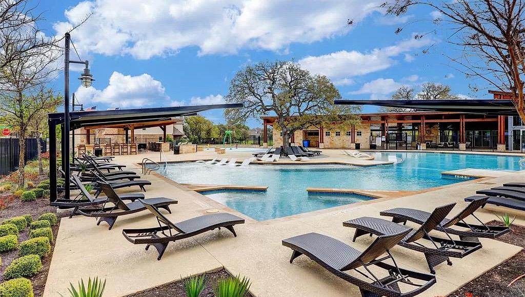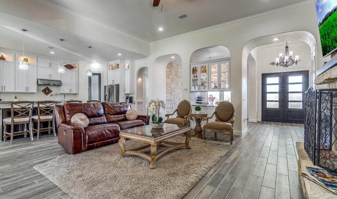 5 BEDS | 5.5 BATHS | 4,994 SQ FT | $2,697,770 | Located in the gated community of Clearwater Landing at Lake LBJ, this newly constructed residence is the ultimate dream home for those insisting on the finest in design and craftsmanship. This hill country contemporary home is graced by a bright and open floorplan featuring wide plank White Oak hardwood floors and is filled with warm, sophisticated furnishings and décor. The captivating two-story foyer, with its cascading chandelier and curved staircase, draws you into a layout made for entertaining. Fluted wall panels anchored by a linear fireplace define the 20’ ceiling in the great room, lit by a dramatic pendant chandelier and natural light that spills in from the 12-foot glass sliding doors. The gourmet kitchen with custom cabinetry and large center island features quartz countertops and professional-grade appliances duplicated in the adjacent prep kitchen. The primary suite presents opulent amenities such as a coffee bar, a retractable projector screen, surround sound, and a fireplace. The second floor hosts all guest suites, a bonus prayer room, a workout room, and a state-of-the-art home theater. The indoor luxury extends outside to the living and dining spaces, where a fully equipped summer kitchen boasts a gas grill, wood-fired pizza oven, wine refrigerator, drawer fridge & freezer, dishwasher and sink. Enjoy Lake LBJ access without paying waterfront prices, as your separately leased boat slip is waiting at the Clearwater Marina, located just 1 minute away.