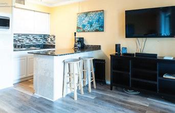 Gated, 2 bedrooms, 2 baths, furnished condo with covered parking, onsite management, and elevators. Indulge in resort-like amenities, including a spacious pool, hot tub, fully equipped gym, and lush tropical landscaping. The front balcony offers views of the causeway and Bay. This gorgeous unit was completely remodeled in 2021 with luxury vinyl floors, inset lighting, new kitchen appliances, and quartz countertops. Best of all, the beach is just a short walk away, making every day a beach day.