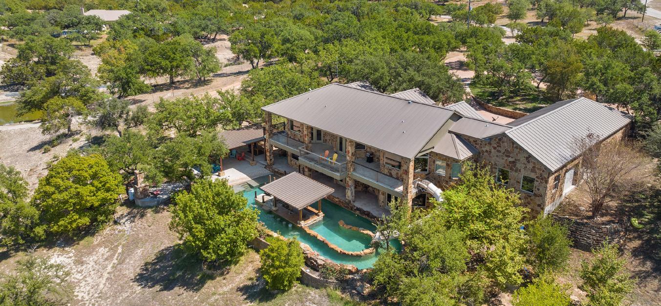 5 BEDS | 5 FULL BATHS 3 HALF BATHS | 5,368 SQ FT | $4,995,000 | Welcome to 315 Matern Ct., An extraordinary waterfront estate located in the exclusive gated community of Matern Island and just seconds from the open water. This newly constructed property offers the epitome of luxury living on 76’ of Lake LBJ waterfront, boasting breathtaking lake views from almost every room. No detail was overlooked in the design and construction of this incredible residence! With multiple indoor and outdoor living spaces, a 3-car garage, an elevator, and guest quarters with a separate entrance, the home has ample amenities and accommodations for hosting friends and family. The 2-story great room welcomes you to the family room adorned with a floor-to-ceiling fireplace and 10-foot glass stacking doors that open to the covered patio, providing ease of indoor/outdoor living and entertaining. The stunning kitchen is truly the heart of the home, featuring a quartzite waterfall island beneath sparkling pendant lighting. The main level primary suite is a serene retreat with patio access, a spa-like en-suite bath, and a large walk-in closet with built-ins. Upstairs, a wet bar provides convenience while entertaining guests in the game room or media room. Step outside, where multiple levels of outdoor living spaces take advantage of the home’s elevation and provide the perfect setting for enjoying the stunning views of Lake LBJ and the hill country beyond. Resort-style amenities include an outdoor kitchen, a private pool and spa, green space for relaxing in the sun, a lakeside fire pit, and a private boat slip for easy access to Lake LBJ.