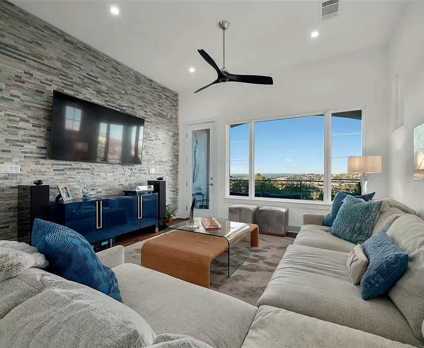 The primary suite features a spa-like bathroom complete with a sauna, oversize closet and flex space. The gourmet kitchen with stainless steel appliances is ideal for both entertaining and casual dining. Enjoy outdoor living with a covered patio, hot tub, and panoramic views. Updated with a freshly epoxied 4-car garage and a circular driveway, this home blends upscale living with the convenience of top rated Lake Travis schools and nearby shopping in Lakeway and Hill Country Galleria.