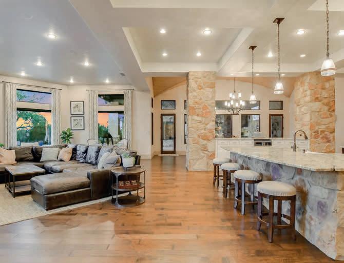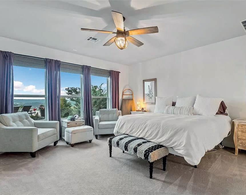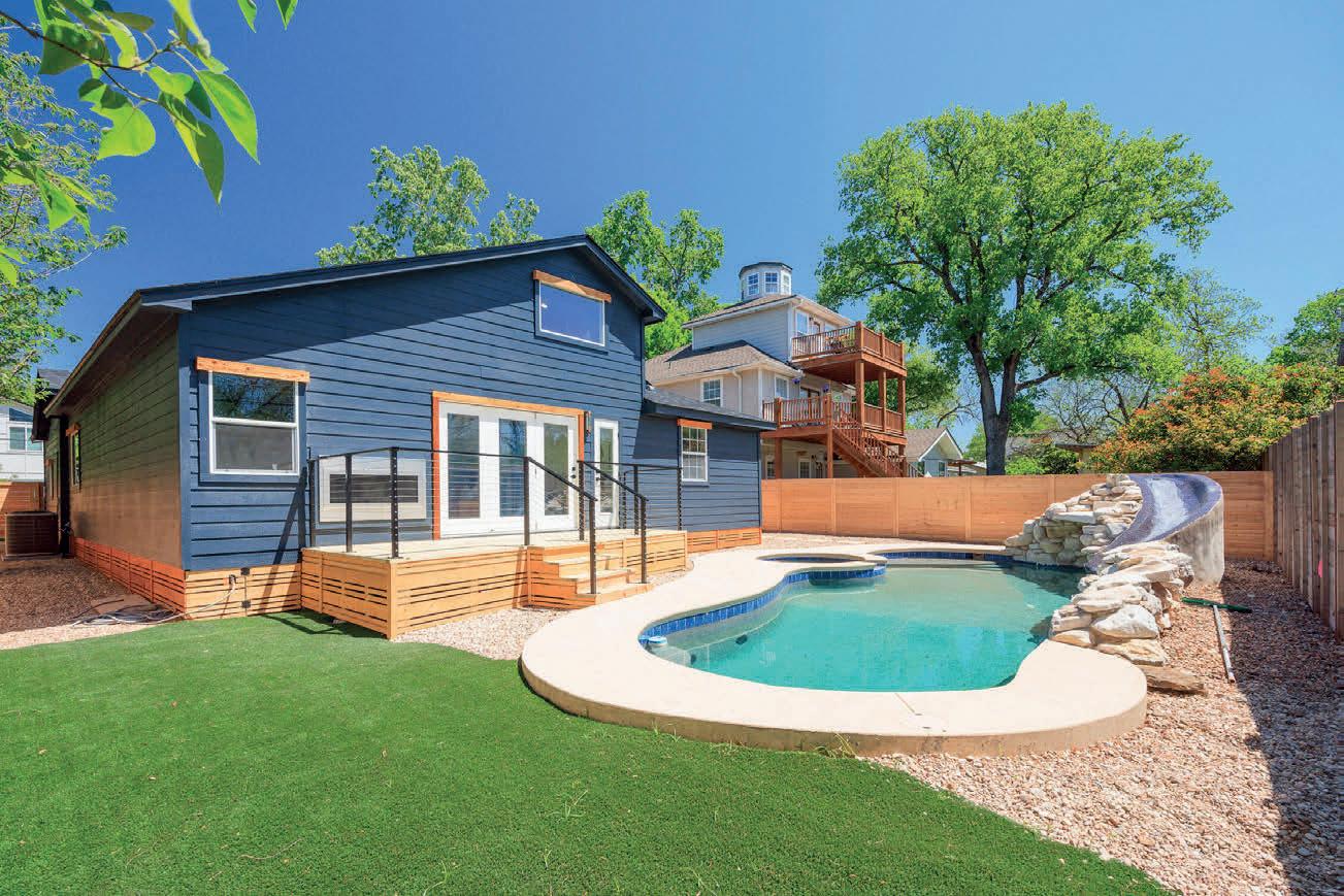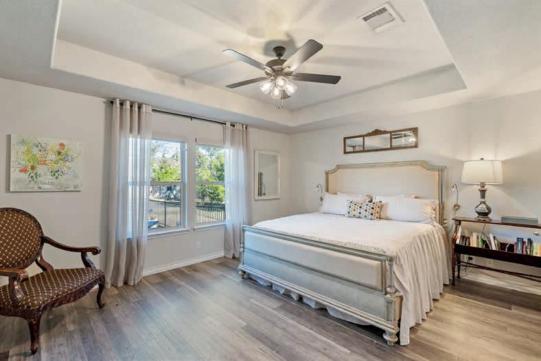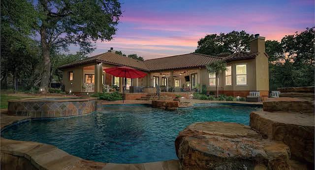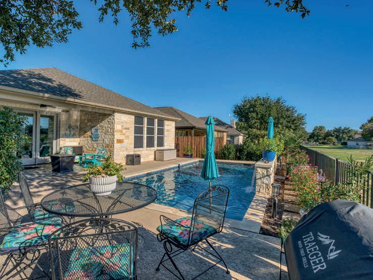 5 BEDS | 5.5 BATHS | 4,994 SQ FT | $2,697,770 | This newly constructed residence located in the upscale Clearwater Landing at The Legends community is the ultimate dream home for those who desire the finest design and craftsmanship. The Hill Country contemporary home features a bright and open floor plan, with wide plank White Oak hardwood floors and warm, sophisticated furnishings and décor. Upon entering, an impressive two-story foyer greets you, topped by a cascading chandelier and a curved staircase. The great room is adorned with fluted wall panels anchored by a linear fireplace, creating an elegant ambiance, further enhanced by the natural light streaming in from the 12-ft glass sliding doors. The gourmet kitchen and adjacent prep kitchen boast quartz countertops and top-of-the-line stainless steel appliances. The primary suite is an amenity-rich retreat equipped with a coffee bar, retractable projector screen, and a fireplace, with a show-stopping en-suite bath. The second-floor features four guest suites, a bonus prayer room, a workout room and state-of-the-art home theater. The indoor luxury extends outside to the living and dining spaces, where a fully equipped summer kitchen offers a gas grill, wood-fired pizza oven, wine refrigerator and dishwasher. Enjoy Lake LBJ access without paying waterfront prices, as your boat slip is waiting just one minute away at the Clearwater Marina. You don’t want to miss this breathtaking home!