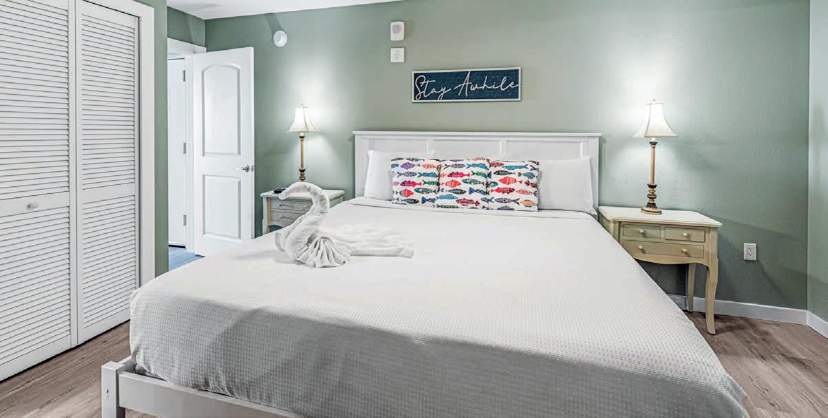 Gated, 2 bedrooms, 2 baths, furnished condo with covered parking, onsite management, and elevators. Indulge in resort-like amenities, including a spacious pool, hot tub, fully equipped gym, and lush tropical landscaping. The front balcony offers views of the causeway and Bay. This gorgeous unit was completely remodeled in 2021 with luxury vinyl floors, inset lighting, new kitchen appliances, and quartz countertops. Best of all, the beach is just a short walk away, making every day a