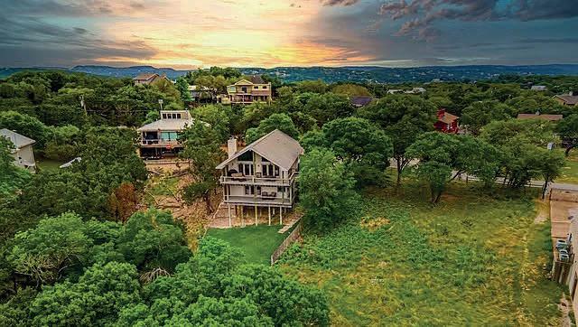 Beautiful stonework and 180-degree views: discover this unique custom-built home in Lago Vista TX. Serene views of Lago Vista disc golf course, Lake Travis, & Texas Hill Country await. Welcoming foyer with 15 ft ceilings leads to main living area with 8ft custom windows framing the views of the Hill Country vistas. Dumbwaiter from garage to upper level provides easy grocery delivery! Other practical features include 2-zone air conditioning and insulated 2-car garage with smart door. Primary bedroom offers tray ceilings, walk-in closet, access to covered patio. Primary bathroom features 10-jetted jacuzzi tub, walk-in shower, double vanities. Outdoor lovers paradise with 300+ sq ft covered patio/deck, fire pit, seating area. Lower-level guest suite with covered patio, full bathroom, Murphy bed, wet bar. Lago Vista offers nine parks, Hancock Park boat ramp nearby. Must-see for those looking in the Lake Travis area.