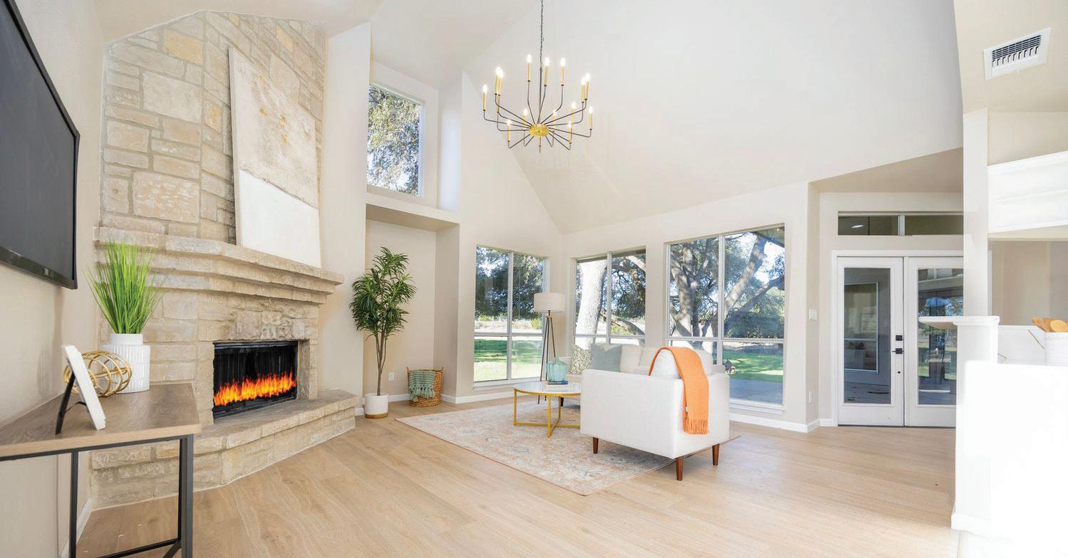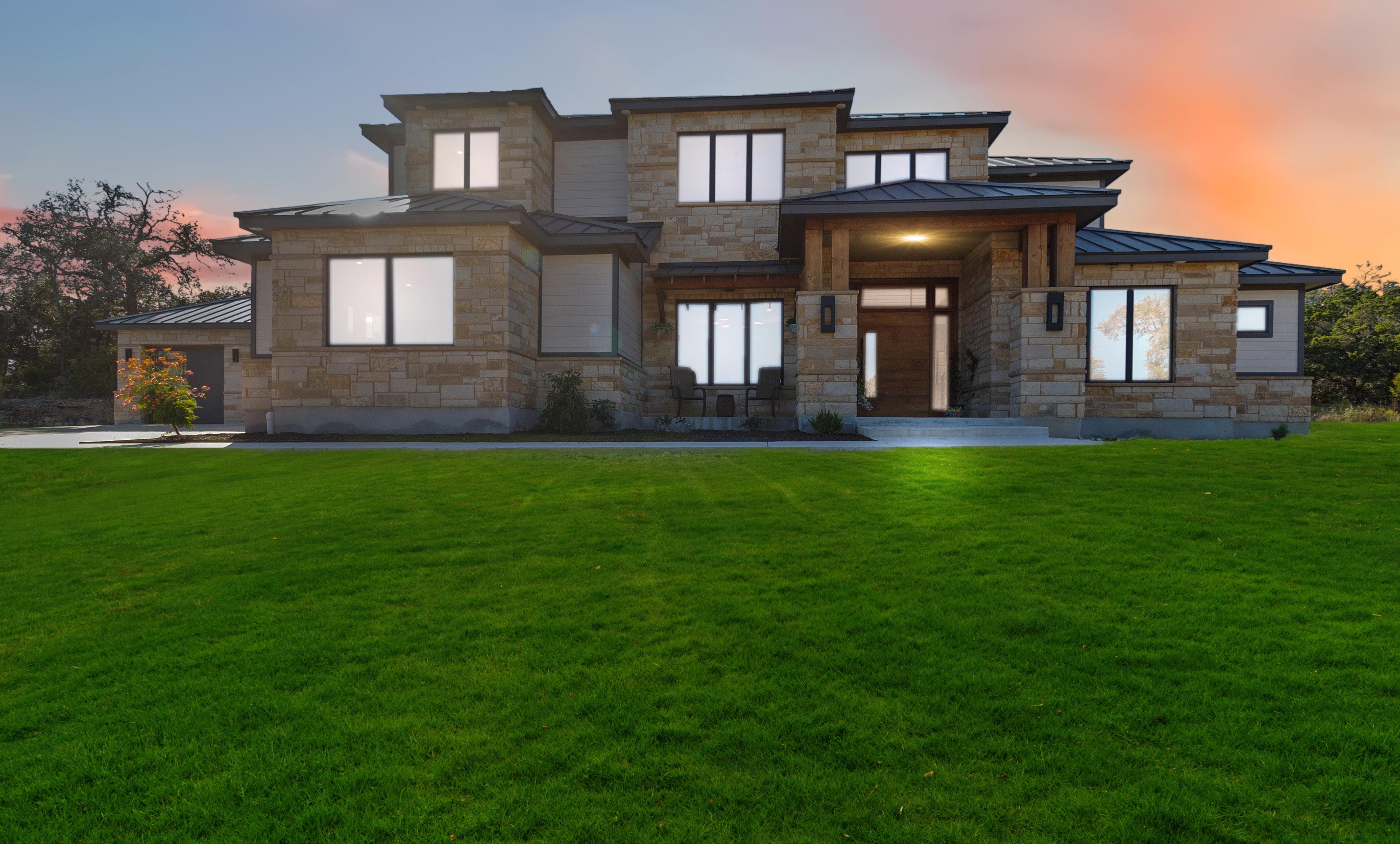 5 BEDS | 5.5 BATHS | 4,994 SQ FT | $2,345,000 | Enjoy easy access to Lake LBJ with a dedicated marina slip for your boat and PWC located only minutes from this newly constructed residence in Clearwater Landing at Lake LBJ. The Hill Country contemporary home features a bright and open floor plan, with wide plank White Oak hardwood floors and warm, sophisticated furnishings and decor. Upon entering, an impressive two-story foyer greets you, topped by a cascading chandelier and a curved staircase. The great room is adorned with fluted wall panels anchored by a linear fireplace, creating an elegant ambiance, further enhanced by the natural light streaming in from the 12-ft. glass sliding doors. The gourmet kitchen and adjacent prep kitchen boast quartz countertops and top-of-the-line stainless steel appliances. The primary suite is an amenity-rich retreat equipped with a coffee bar, retractable projector screen, and a fireplace, as well as a show-stopping ensuite bath. The second floor features four guest suites, a bonus prayer room, a workout room and state-of-the-art home theater. The indoor luxury extends outside to the living and dining spaces, where a fully equipped summer kitchen offers a gas grill, wood-fired pizza oven, wine refrigerator and dishwasher. You don’t want to miss this breathtaking home!