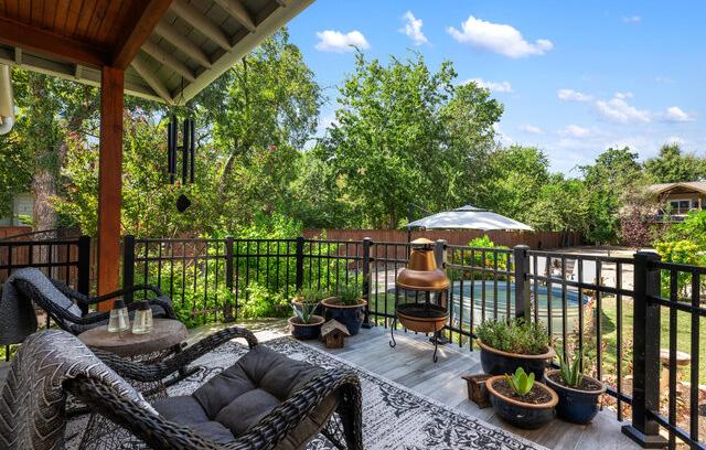 Darling 3/2 on a double lot with tons of outdoor amenities to include covered porches, open deck, additional outdoor living space, storage building, fenced privacy backyard.