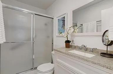 The kitchen is a culinary dream, seamlessly blending function and style. Outfitted with stone countertops, custom cabinetry, and a LaCanche range, it’s the perfect space to indulge your inner chef.
