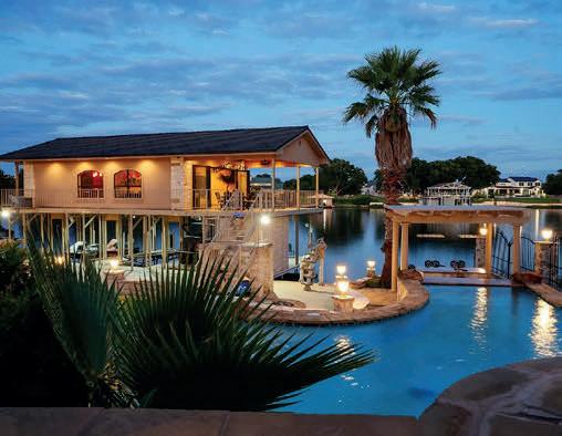 BEDS | 5 FULL & 3 HALF BATHS | 5,368 SQ FT | $4,600,000 | Welcome to 315 Matern Ct., an extraordinary waterfront estate located in the exclusive gated community of Matern Island, just seconds from open water. This newly constructed property offers the epitome of luxury living on 76’ of Lake LBJ waterfront, boasting breathtaking lake views from almost every room. With multiple indoor and outdoor living spaces, 3-car garage, elevator, and guest quarters, the home has ample amenities and accommodations for hosting. The great room opens to the family room adorned with a floor-toceiling fireplace and 10-foot glass stacking doors, providing ease of indoor/outdoor living and entertaining. The stunning kitchen features a quartzite waterfall island beneath sparkling pendant lighting. The main level primary suite features patio access, a spa-like ensuite bath, and a large walk-in closet. Upstairs, a wet bar provides convenience while entertaining guests in the game room or media room. Step outside, where multiple levels of outdoor living spaces take advantage of the home’s elevation and provide the perfect setting for enjoying the stunning views of Lake LBJ and the hill country beyond. Resort-style amenities include an outdoor kitchen, a private pool and spa, green space for relaxing in the sun, a lakeside fire pit, and a private boat slip for easy access to Lake LBJ.