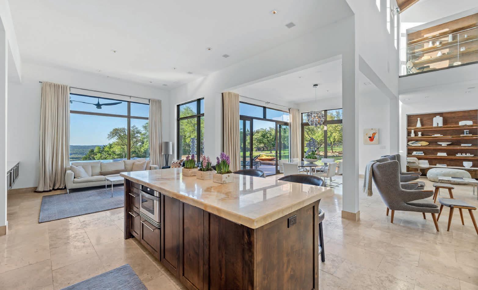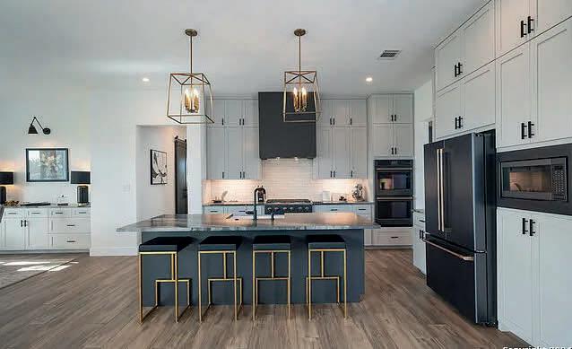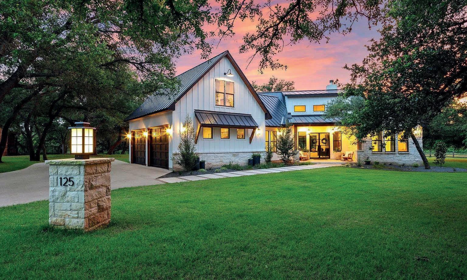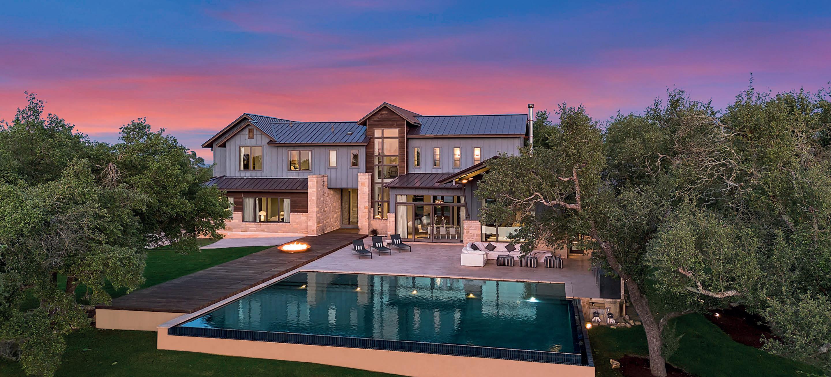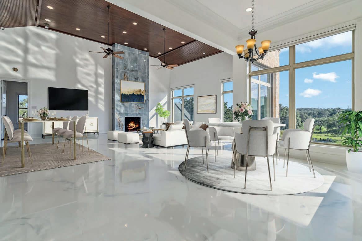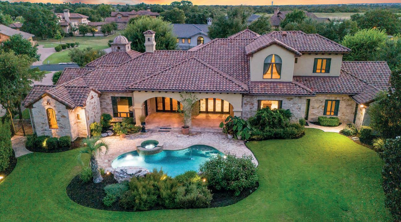5 BEDS | 5.5 BATHS | 4,994 SQ FT | $2,495,000 | This newly constructed residence located in the upscale Clearwater Landing at The Legends community is the ultimate dream home for those who desire the finest design and craftsmanship. The Hill Country contemporary home features a bright and open floor plan, with wide plank White Oak hardwood floors and warm, sophisticated furnishings and décor. Upon entering, an impressive two-story foyer greets you, topped by a cascading chandelier and a curved staircase. The great room is adorned with fluted wall panels anchored by a linear fireplace, creating an elegant ambiance, further enhanced by the natural light streaming in from the 12-ft glass sliding doors. The gourmet kitchen and adjacent prep kitchen boast quartz countertops and top-of-the-line stainless steel appliances. The primary suite is an amenity-rich retreat equipped with a coffee bar, retractable projector screen, and a fireplace, with a show-stopping en-suite bath. The second-floor features four guest suites, a bonus prayer room, a workout room and state-of-the-art home theater. The indoor luxury extends outside to the living and dining spaces, where a fully equipped summer kitchen offers a gas grill, wood-fired pizza oven, wine refrigerator and dishwasher. Enjoy Lake LBJ access without paying waterfront prices, as your boat slip is waiting just one minute away at the Clearwater Marina. You don’t want to miss this breathtaking home!
